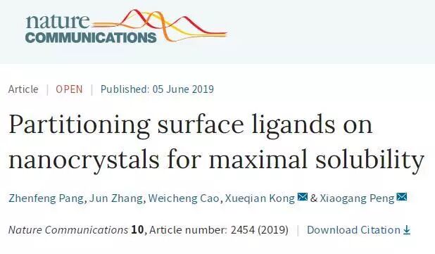 浙江大学化学系彭笑刚和孔学谦研究团队共同合作,利用固体核磁技术,第一次“看”清了纳米晶表面配体的动态:配体分子像头发一样附着于粒子表面,呈现不同的“律动”节奏,这种律动状态决定了纳米晶的溶液性质。论文Partitioning surface ligands on nanocrystals for maximal solubility发表于《自然通讯》杂志,共同第一作者为博士生庞振峰和张俊。