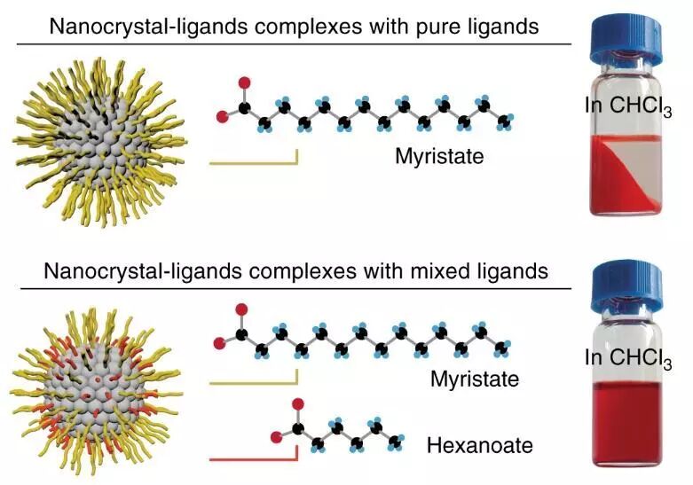 纳米晶是近年来深受科学家青睐的一类明星材料,未来它将广泛步入我们的生活,在显示、照明、检测等领域大显身手。然而,这一“未来之星”自上世纪80年代问世以来,其微观“真面目”——尤其是表面的有机配体——一直神秘莫测,科学家只能描述它的大致“轮廓”,细节却只能靠“猜”。这阻碍了人们对它的定量研究,也影响到材料的进一步优化。